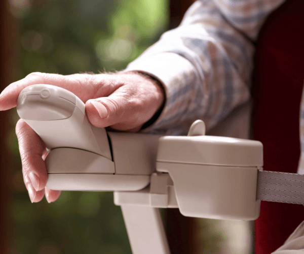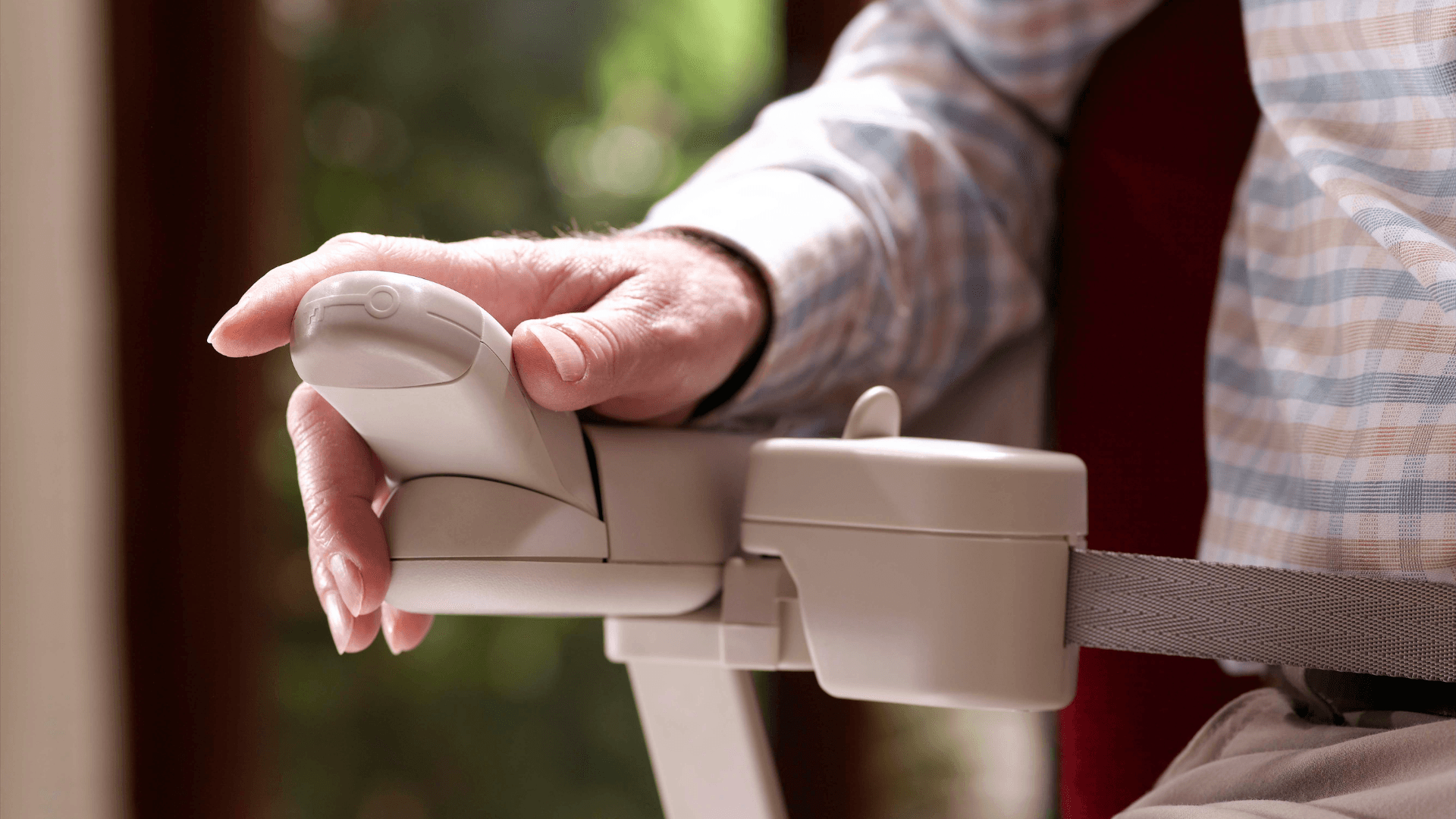 Hissen är enkel att manövrera. Körknapparna är monterade i ändan av armstödet och handen kan vila på armstödet, medan fingret styr upp- och nedknappen.